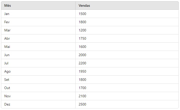Imagine que você tem uma planilha com os seguintes dados de vendas mensais: